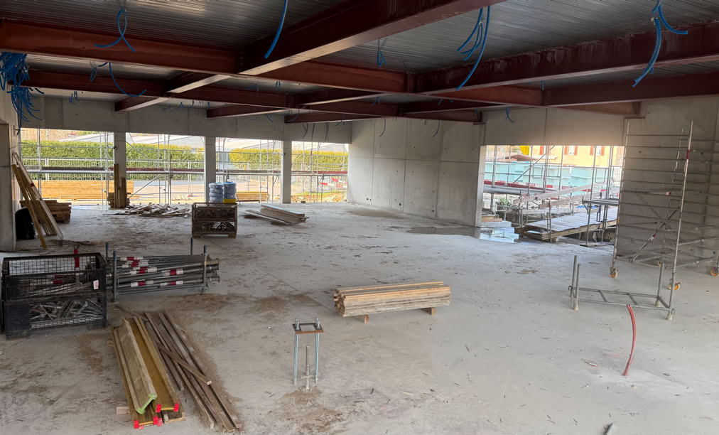 Jusqu'à la fin de l'année, la place de parc située sur l'abri PC servira d'atelier de soudage pour l'entreprise fribourgeoise chargée d'installer la charpente métallique dans les prochaines semaines. Cette zone dédiée permettra d’assembler rapidement et en toute sécurité les pièces qui formeront l’ossature du bâtiment. Près de 800m2 seront réservés à l’atelier de soudage. Les ouvriers engagés sur le chantier ont donc été priés d'utiliser, dès cette semaine, le parking du centre sportif pour garer leurs véhicules privés.