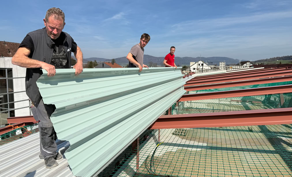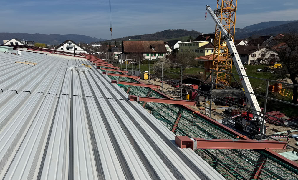 Le complexe scolaire de Courtételle devrait être sous toit pour Pâques ! Depuis quelques jours, l’entreprise Macom a entrepris la pose des tôles de couverture et des pare-vapeur. La mise hors d'eau du bâtiment sera effective dans le courant du mois d'avril.